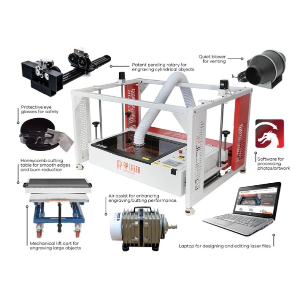 All AP Lazer laser engraving machines include a turnkey package to help you get started right away
