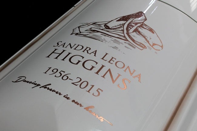 Even cold metal caskets can harken back warm emotions and memories with laser engraving.